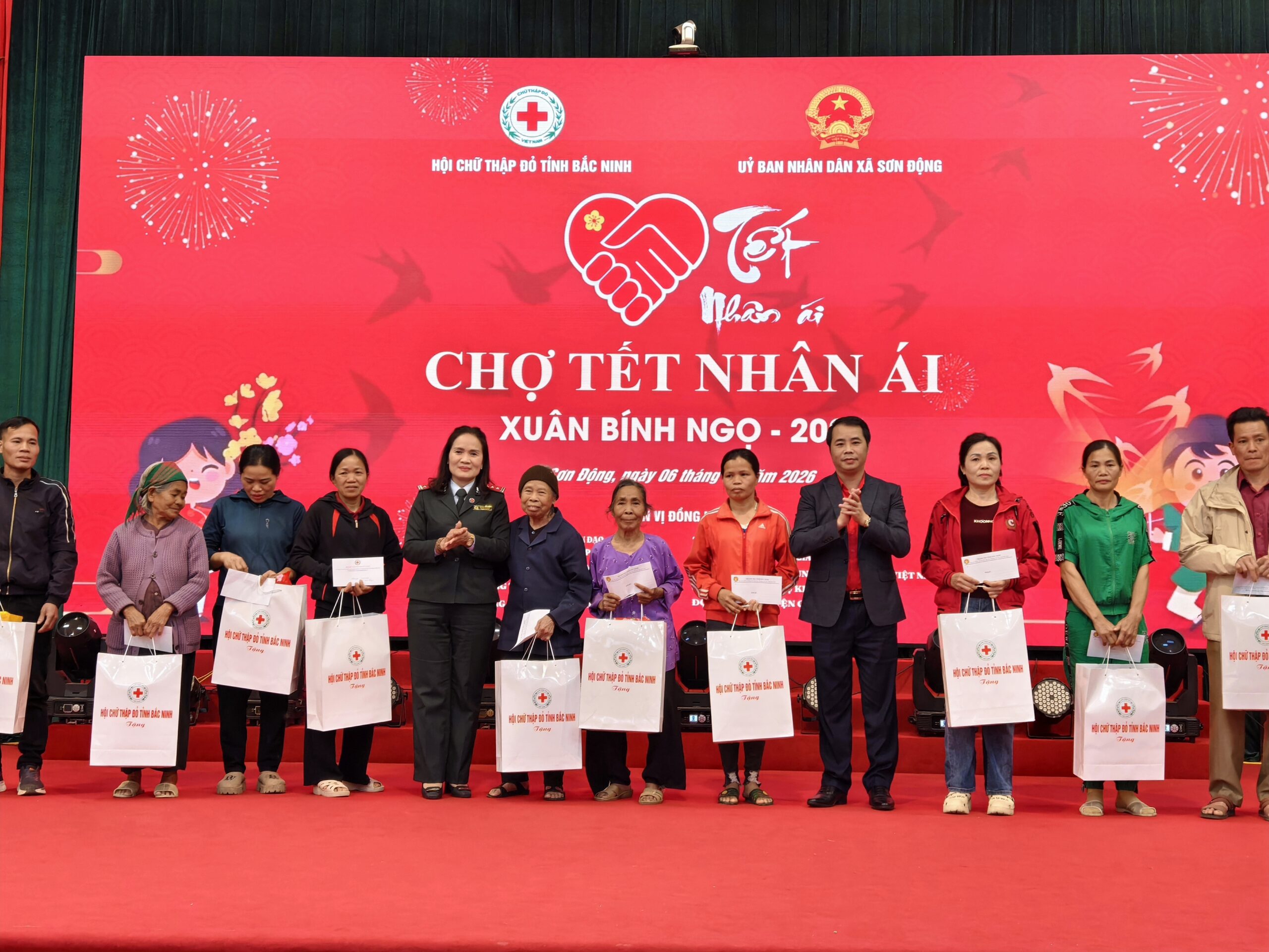 Thực hiện Kế hoạch của Hội Chữ thập đỏ tỉnh Bắc Ninh, chiều ngày 06/02/2026 (tức ngày 19 tháng Chạp năm Ất Tỵ), tại trụ sở UBND xã Sơn Động, tỉnh Bắc Ninh, Chương trình “Chợ Tết Nhân ái – Xuân Bính Ngọ 2026” đã được tổ chức trang trọng, ấm áp nghĩa tình.